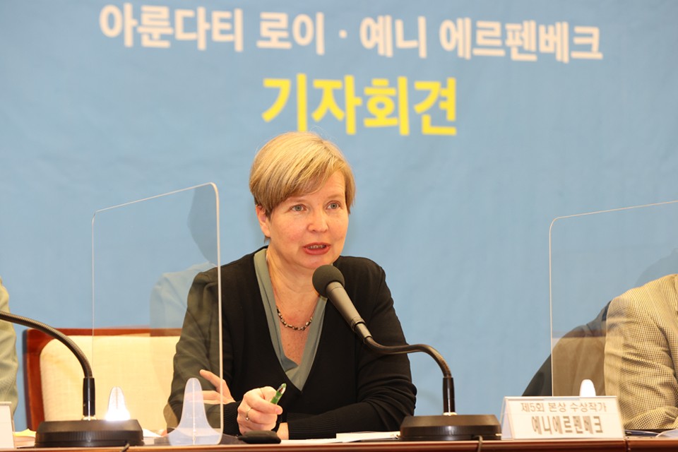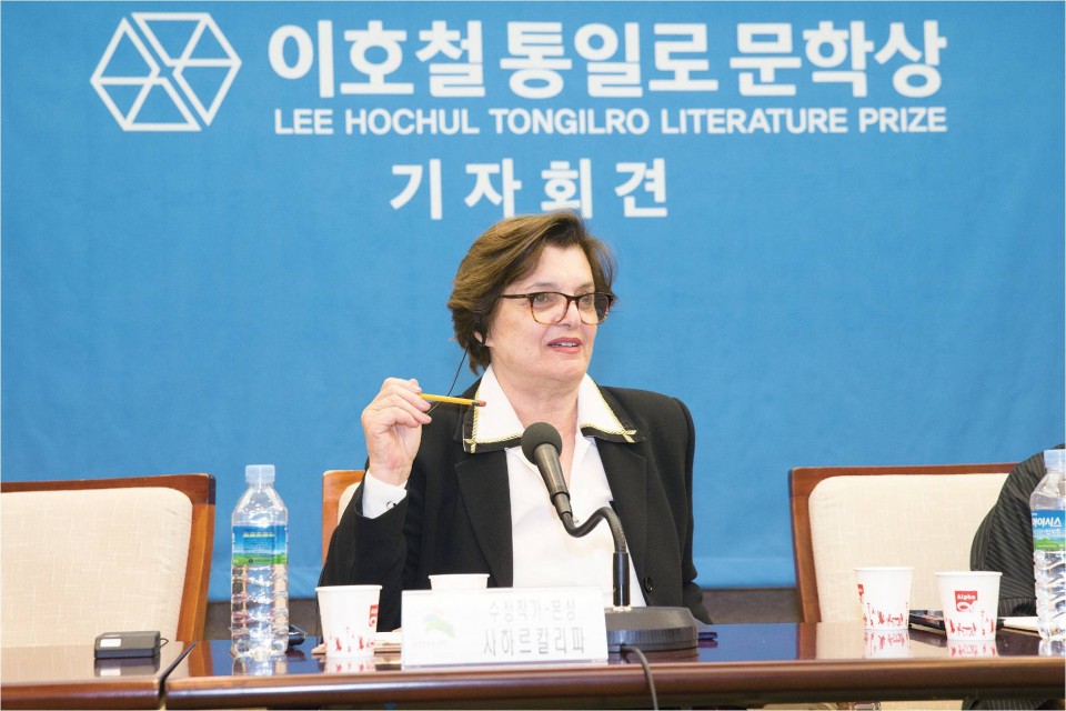 기자회견 중인 제2회 수상작가 사하르칼리파 Jenny Erpenbeck, the Grand Laureate of the 5th LLPP, during a Press Conference