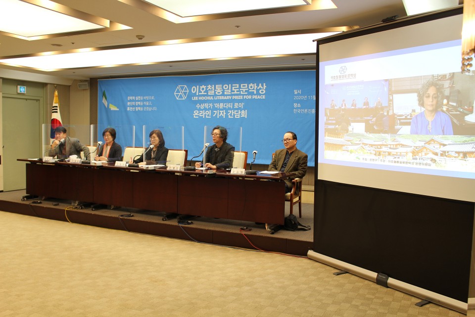 본상 수상작가 아룬다티 로이와 기자들의 인터뷰 현장 Arundhati Roy and the Korean press at the online press conference